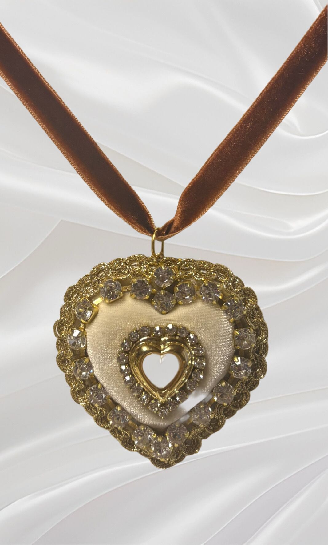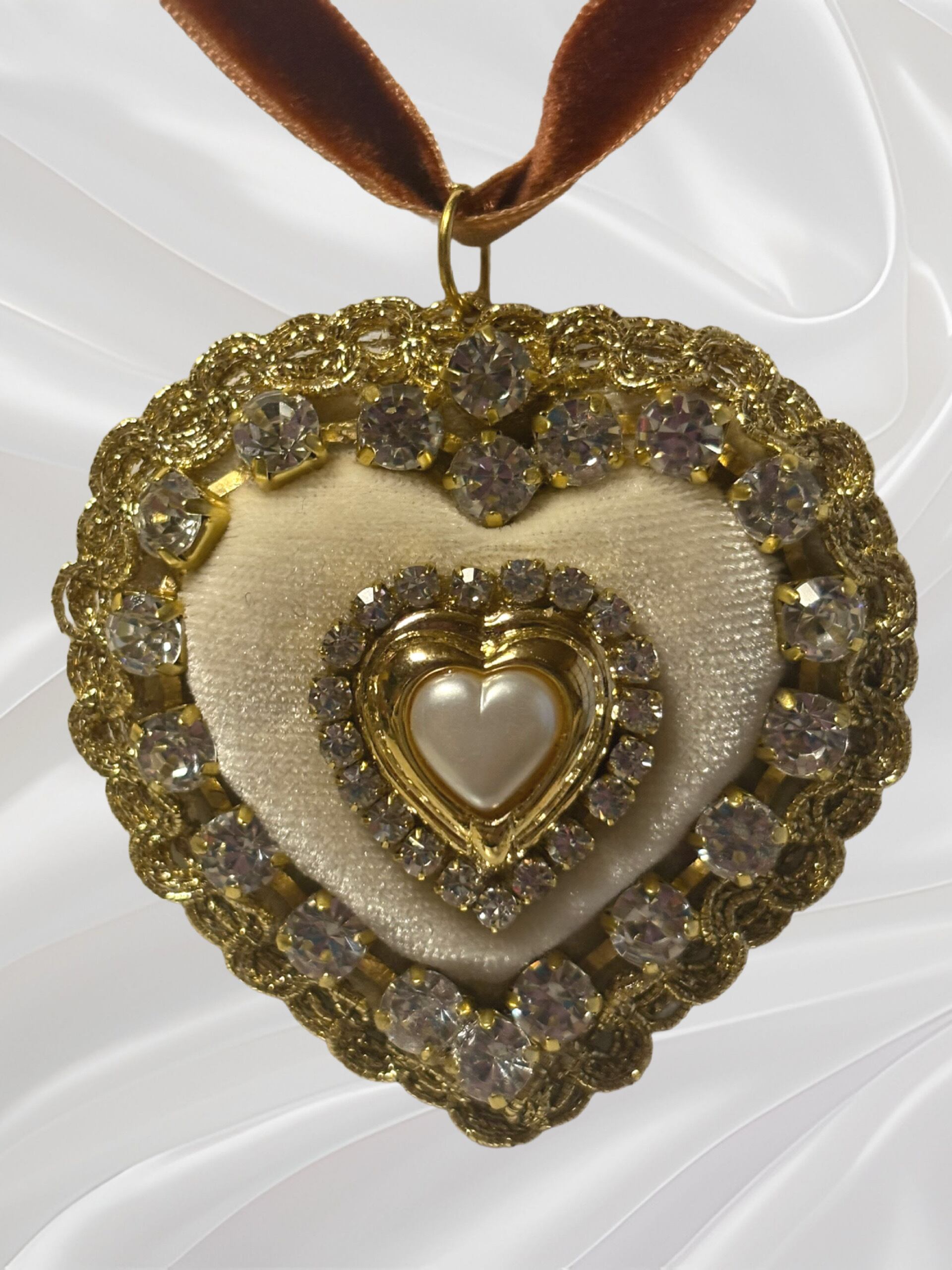 クリスタルと中央の大粒ハート型パールが存在感を引き立ててくれています。