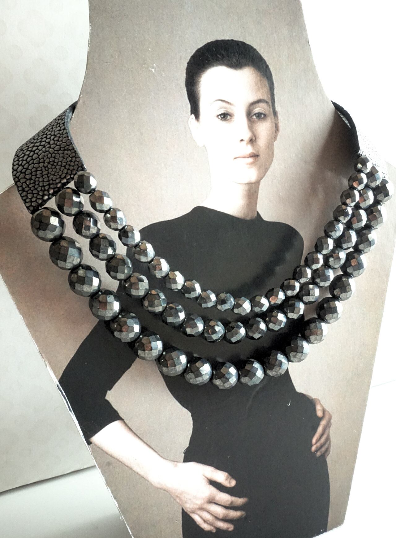 レザーは首に気持ち良くフィットし、後ろの留めは同じ素材のレジナが1粒。