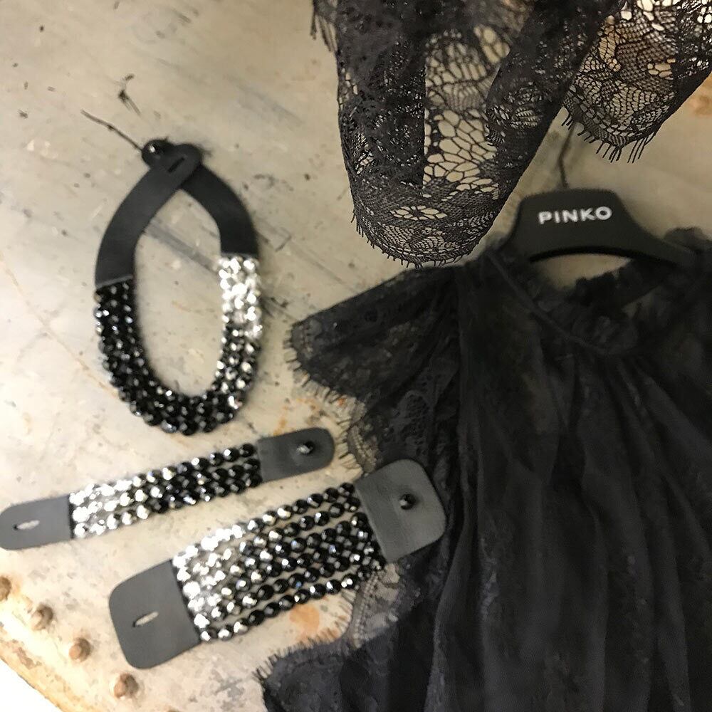 レザーは首に気持ち良くフィットし、後ろの留めは同じ素材のレジナが1粒。