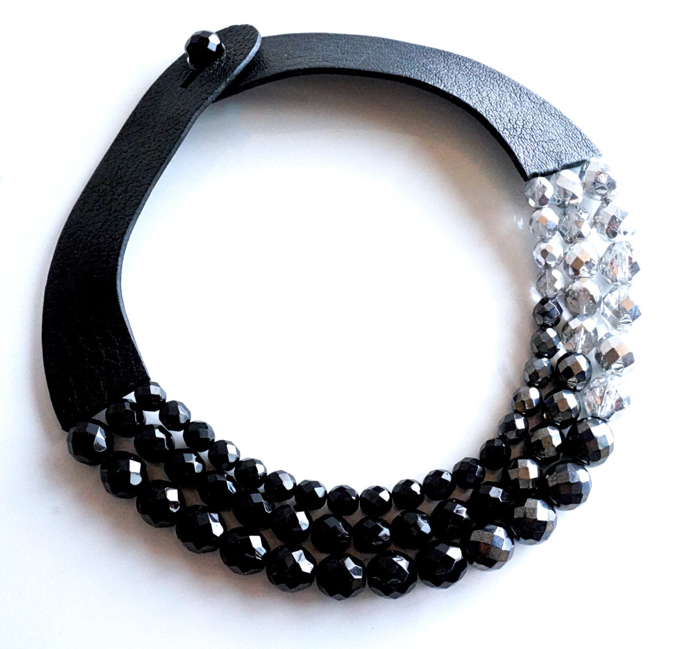 レザーは首に気持ち良くフィットし、後ろの留めは同じ素材のレジナが1粒。