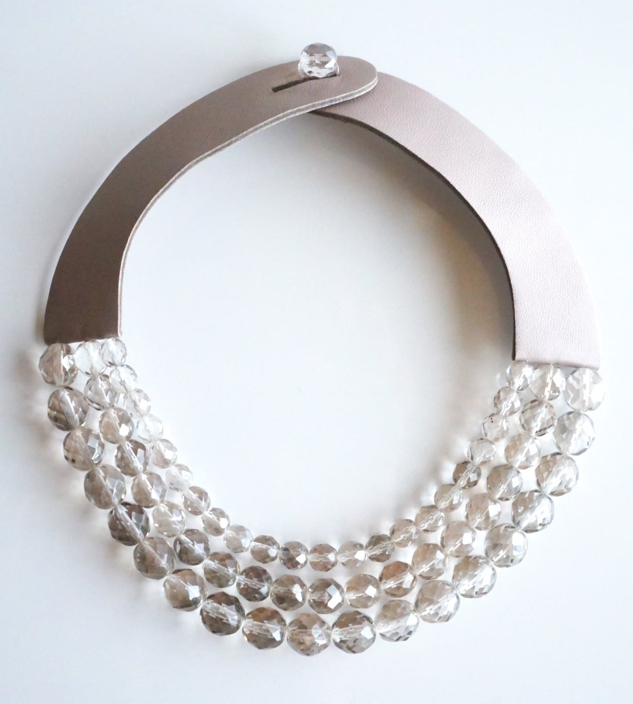 レザーは首に気持ち良くフィットし、後ろの留めは同じ素材のレジナが1粒。